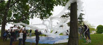 A DIY sensibility of participation and dialogue is at the heart of the Governor’s Cup design, construction and installation. The workshop aims to complete the construction of a serpentine extension of the Governor’s Cup Pavilion, extending the structure through a line of trees adjacent to the site. The pavilion is composed of recycled plastic cup units which are joined in patterns forming larger modules. The modules are configured with structural strategies inspired by crochet knitting techniques as well as in response to the specifics forms of the trees on the island.
